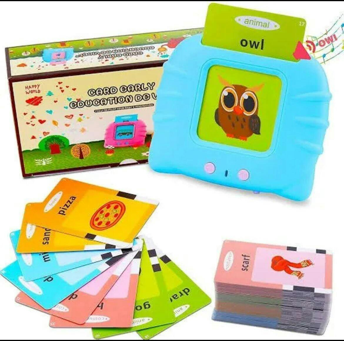 Insert the cards and watch as your child learns about animals, food, and everyday objects through visual and audio learning! This Happy World educational toy makes learning interactive and fun.